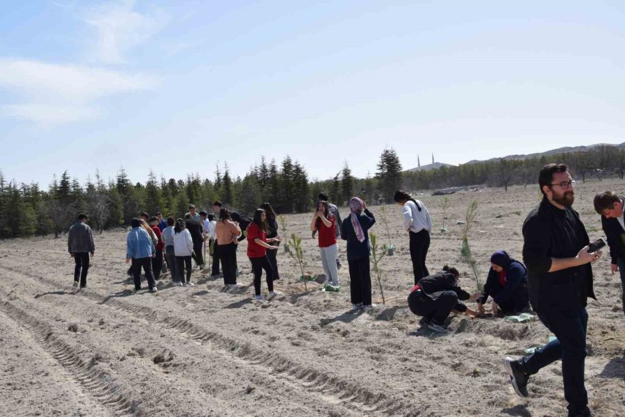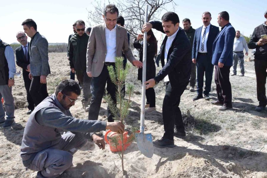 Konya'nın Karapınar ilçesinde 21-26 Mart Orman Haftası çerçevesinde düzenlenen etkinlikte fidanlar toprakla buluştu.
