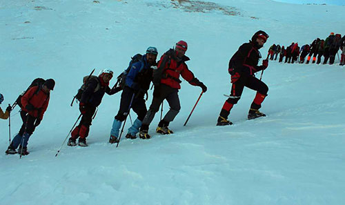 Gece saat:04.00'de başlayan tırmanışımız saat:10.00'da zirveye ulaşmanın sevinciyle yorgunluğumuzu unuttuk. Antalya Todosk dağcılık kulübünün öncülüğünde şehitlerimiz ve şiddet maduru kadınlarımız için saygı duruşu ve İstiklal Marşı'ndan sonra zirve defteri imzalanmasının ardından dönüşe geçtik.