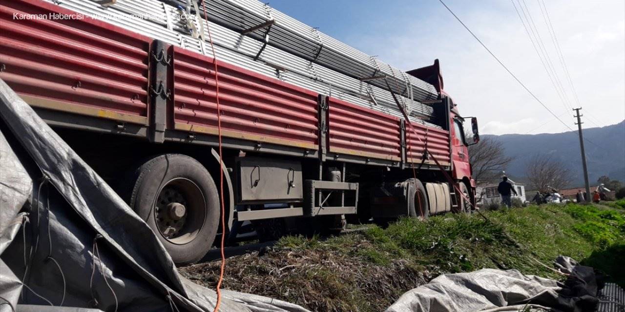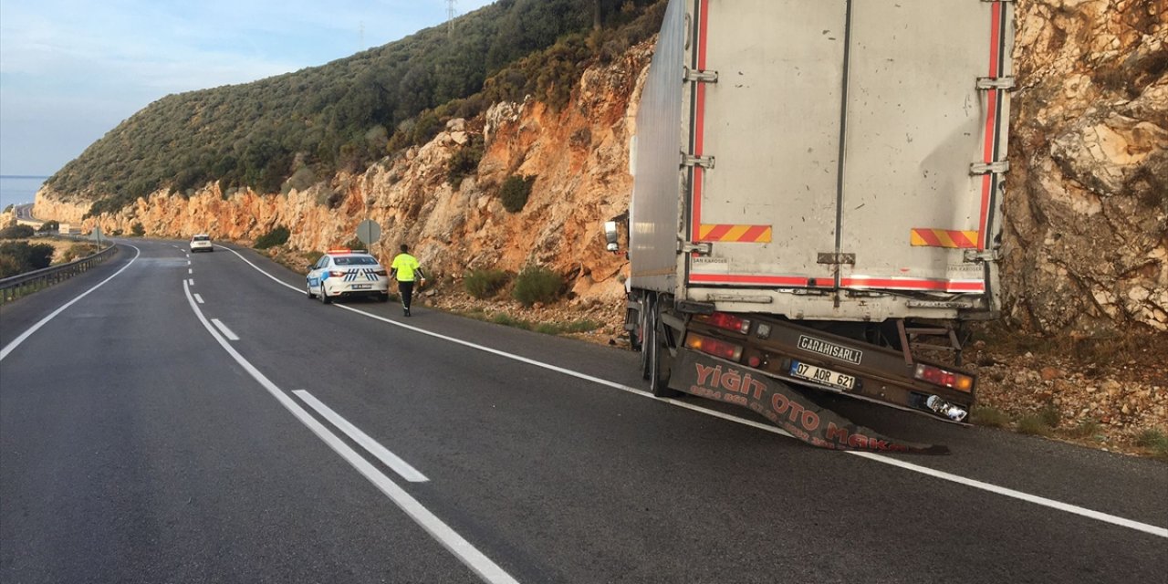 Kayganlaşan Yolda Kamyon Kayalığa Çarptı