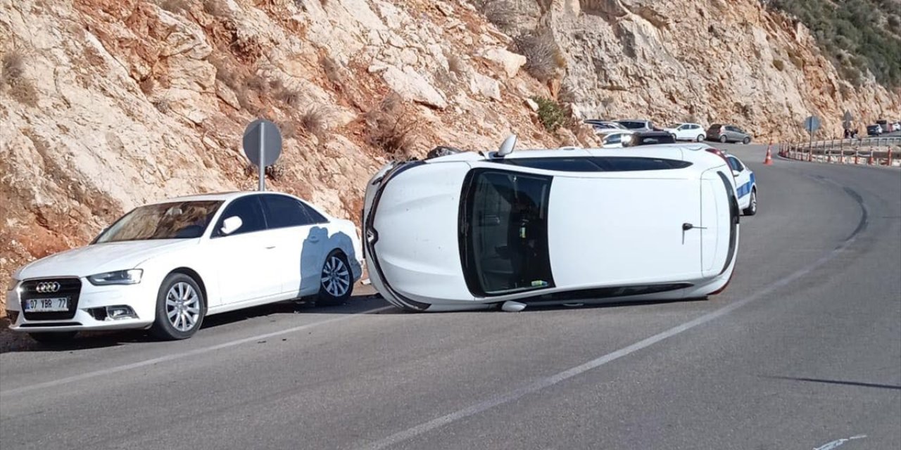Kaş'ta Devrilen Otomobilin Sürücüsü Kazadan Yara Almadan Kurtuldu