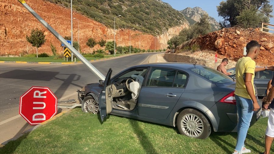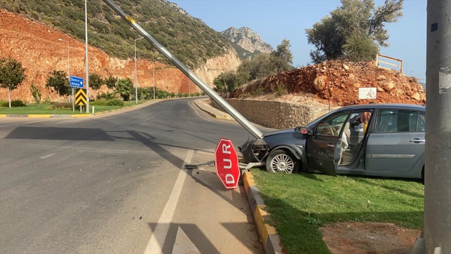 Kaş'ta Otomobil Aydınlatma Direğine Çarptı: 3 Yaralı
