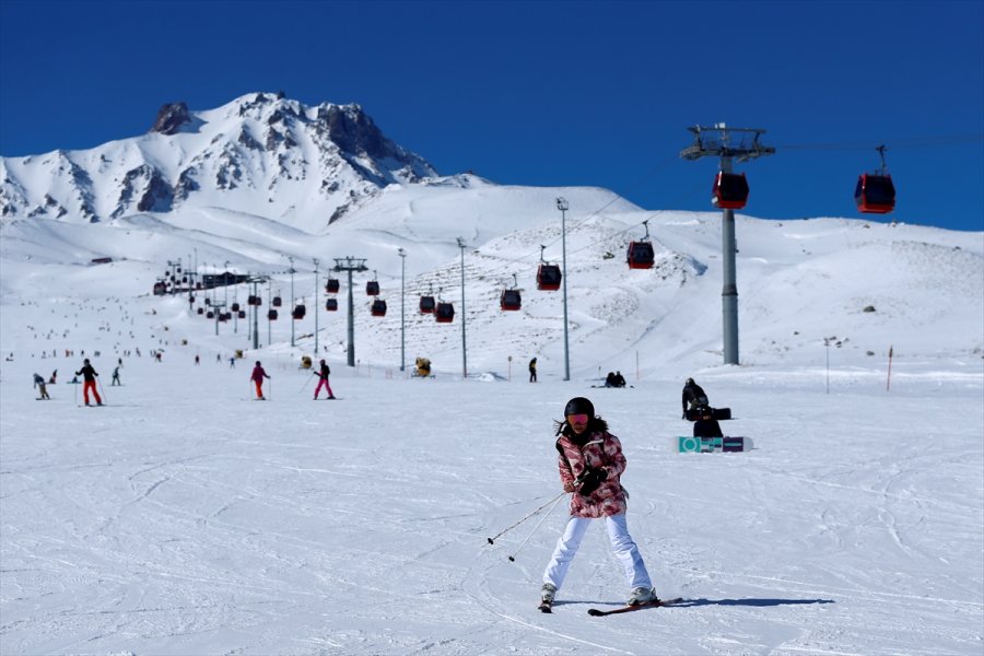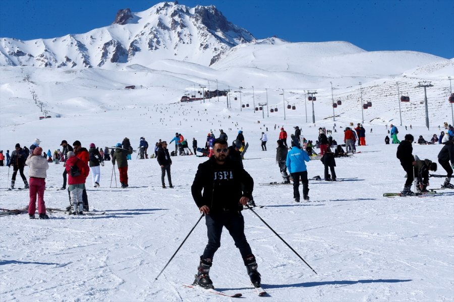 Erciyes'te pistleri dolduran tatilciler, kayak ve snowboard yaparak keyifli vakit geçirdi.