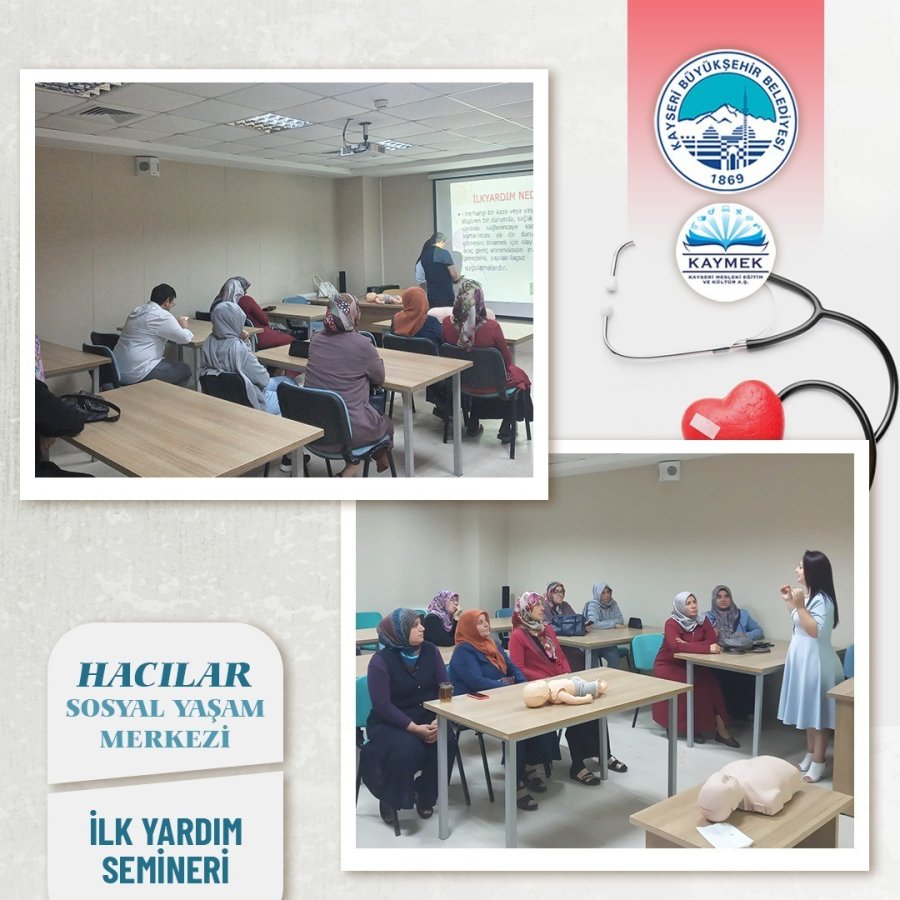Kayseri Büyükşehir Belediyesi, Büyükşehir Belediye Başkanı Dr. Memduh Büyükkılıç'ın talimatları çerçevesinde "bilinçli ve duyarlı toplum" olgusunu her daim üst seviyede tutmak amacıyla birçok eğitim semineri gerçekleştiriyor. Bu çerçevede Büyükşehir Belediyesi KAYMEK, Kayseri İl Sağlık Müdürlüğü işbirliği ile ilçelerde bulunan İlçe Sosyal Yaşam Merkezlerinde "İlk Yardım" seminerleri düzenliyor.