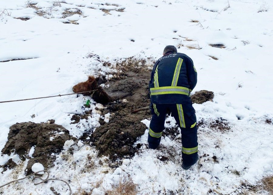 Kayseri OSB İtfaiyesi, Bataklığa Saplanan Yılkı Atını Kurtardı!