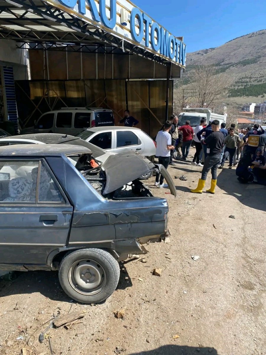 Edinilen bilgiye göre; ilçede bulunan Yeni Sanayi Sitesi'ne tamir için getirilen kamyon, iddiaya göre freninin boşalması sonucu geri geri giderek, 4 iş yerine ve 10 araca çarptı. Kamyon bir süre daha ilerledikten sonra dururken, olayda ölen ya da yaralanan olmadı. İhbar üzerine bölgeye sevk edilen polis ekipleri de inceleme yaptı.