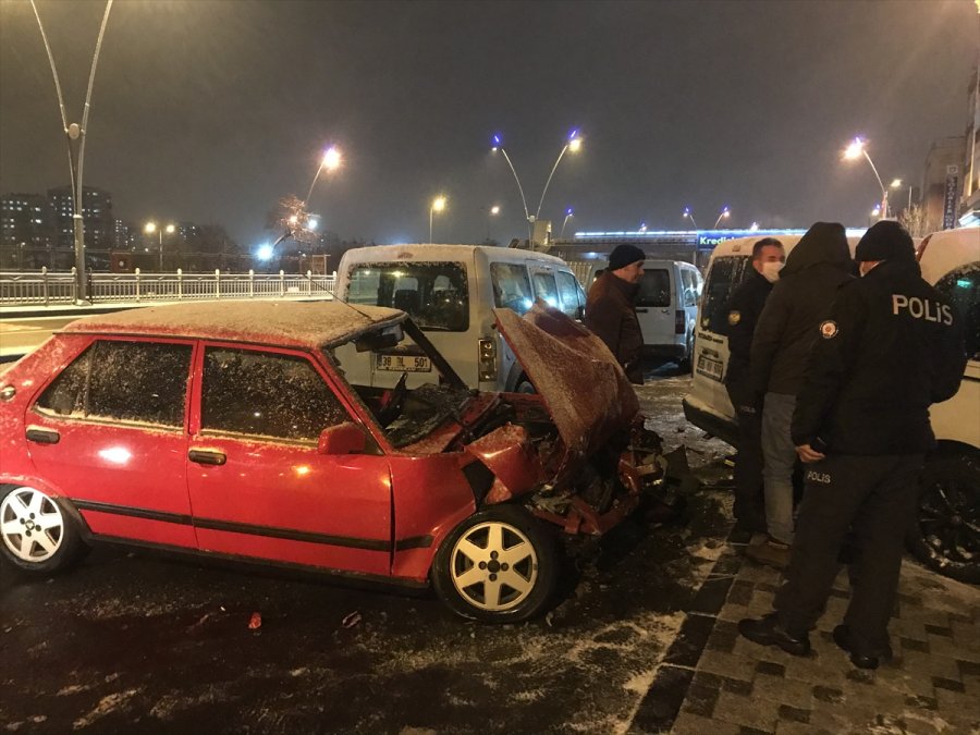 Yunus Emre Alan idaresindeki 28 TF 319 plakalı otomobil, Kocasinan Bulvarı'nda kontrolden çıkarak Çocuk Şube Müdürlüğü önünde park halinde bulunan 3 polis aracına çarptı.