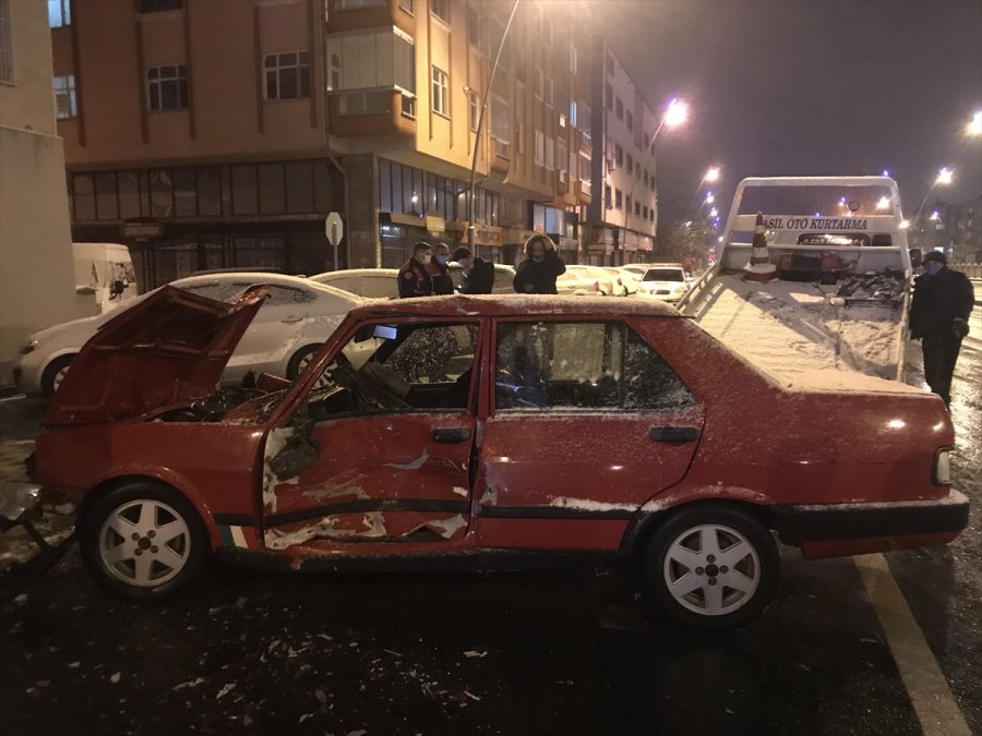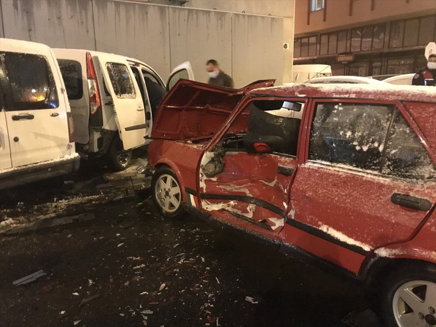 Kayseri'de Kontrolden Çıkan Otomobil Park Halindeki 3 Polis Aracına Çarptı