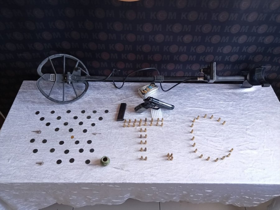 Şüphelilerin ikametlerinde yapılan aramada, Roma, Bizans ve Selçuklu dönemlerine ait olduğu değerlendirilen 31 bronz, bir altın sikke, toprak vazo, 3 obje, define arama detektörü ile ruhsatsız tabanca ele geçirildi.