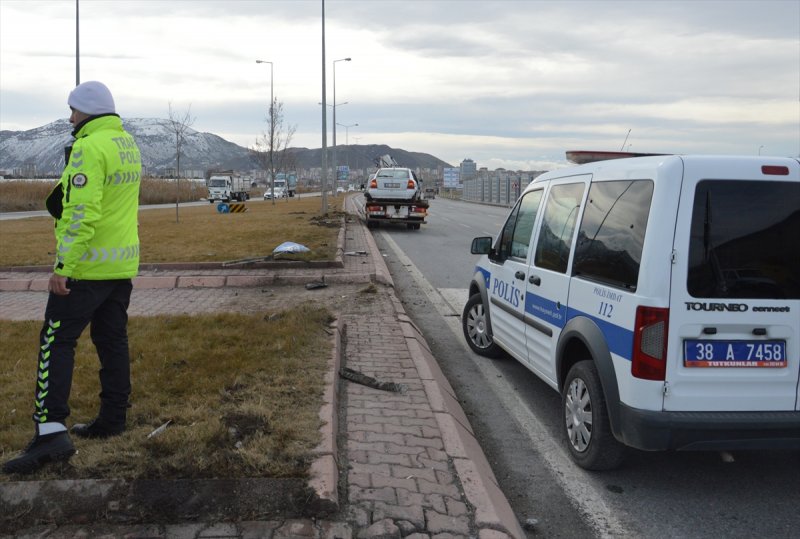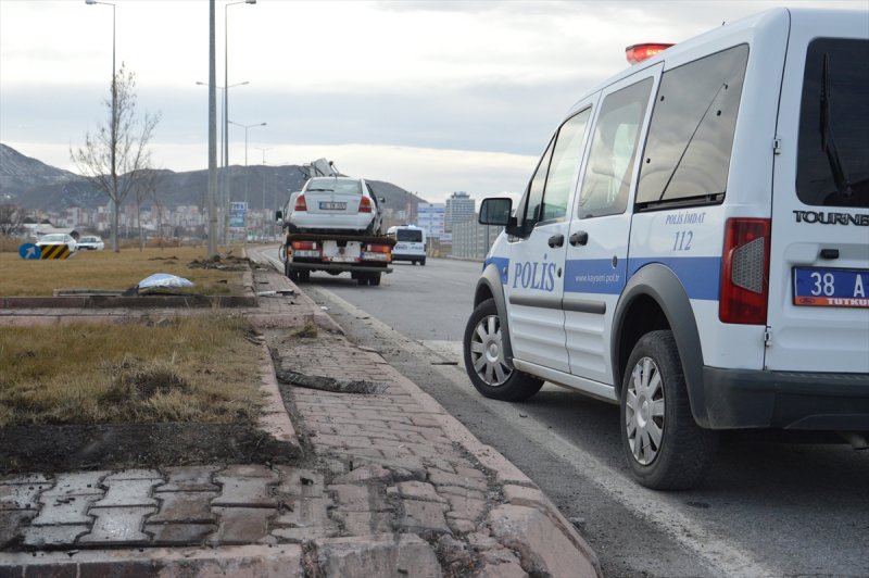 Alınan bilgiye göre, sürücüsü belirlenemeyen 38 EN 597 plakalı otomobil, Kocasinan İlçesi Muhsin Yazıcıoğlu Bulvarı'nda refüjdeki trafik tabelasına çarparak devrildi.