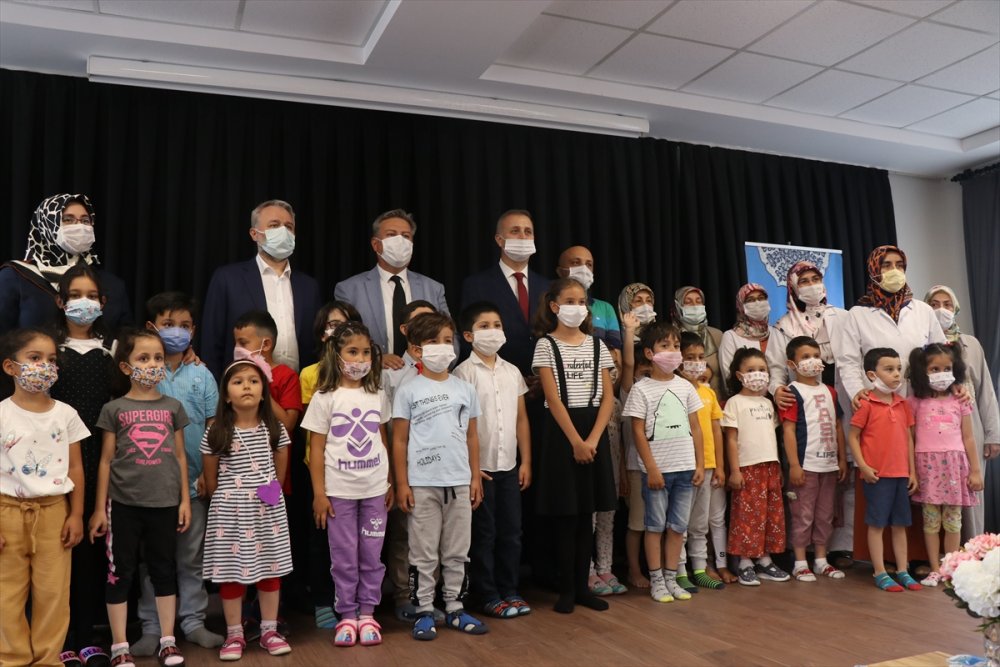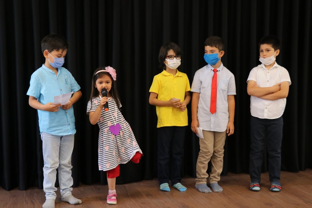 Konuşmaların ardından bazı minik öğrenciler, Kur'an-ı Kerim'de sureleri ezbere okurken, başka bir öğrenci de İstiklal Marşı'nı okudu.
