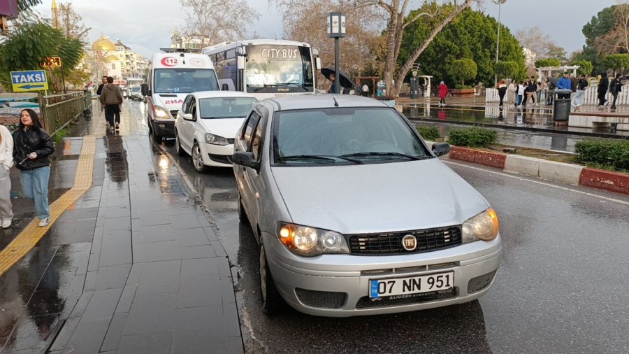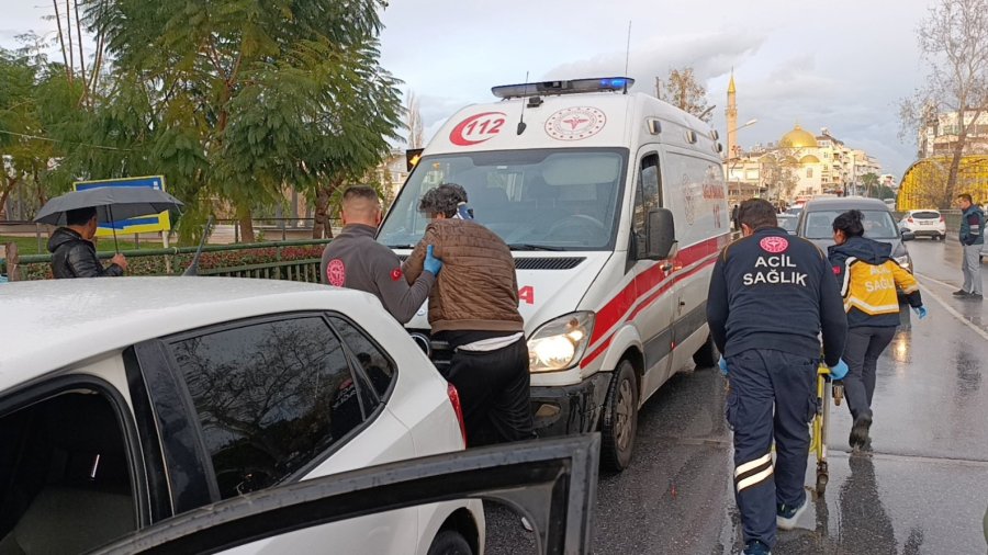 Antalya'da yayaya yol vermek için duran araca arkadan çarpan otomobilin sürücüsü, kazanın ardından şoka girdi.