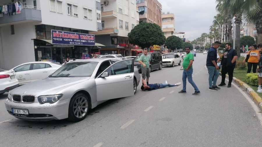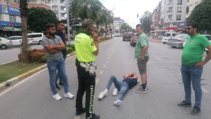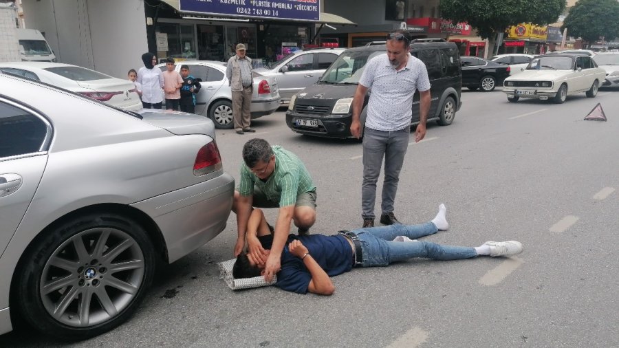 Antalya'nın Manavgat ilçesinde tomobile çarpmamak için fren yapınca devrilen motosikletin sürücüsü yaralandı. Yaralı sürücüye ilk müdahaleyi olay yerinde tesadüfen bulunan bir doktor yaparken, gencin durumunu kontrol eden doktor ambulans gelene kadar başından ayrılmadı.