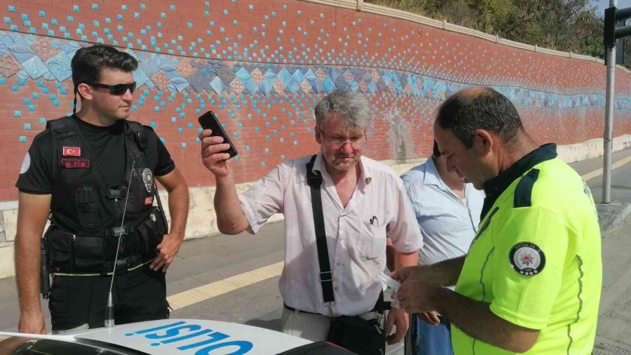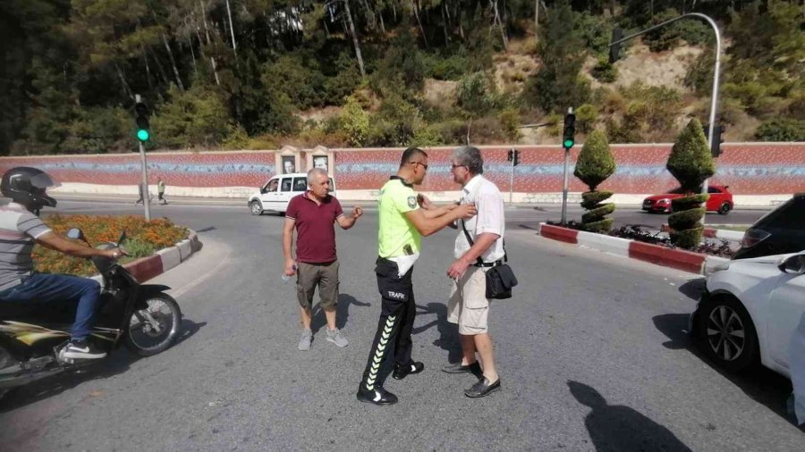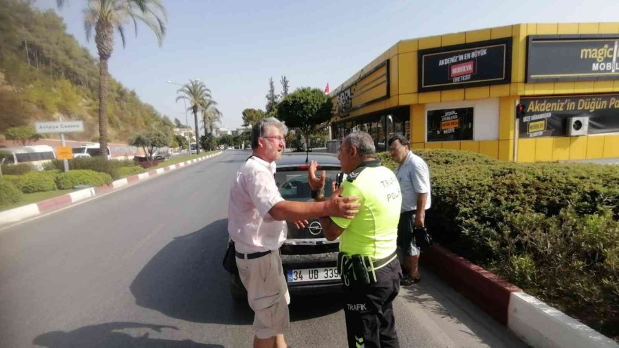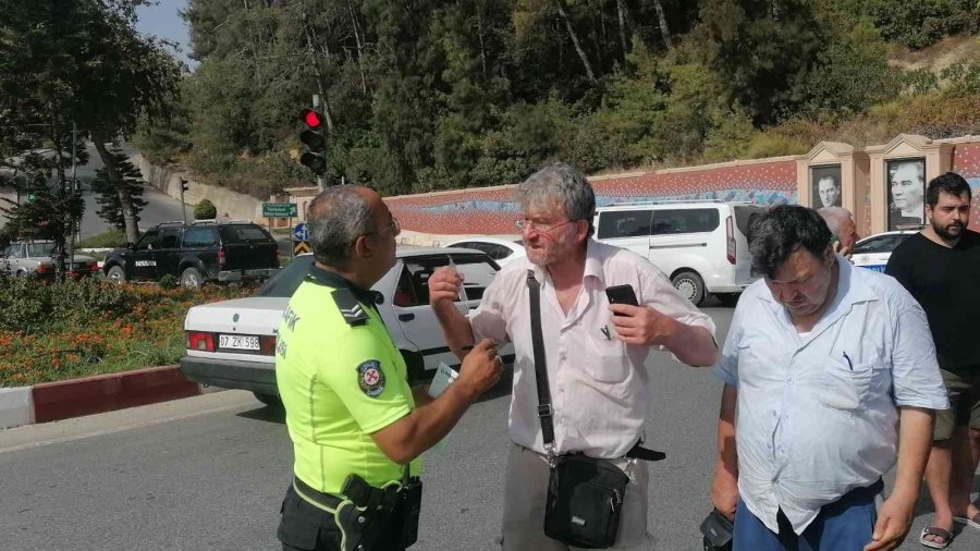 Antalya'nın Manavgat ilçesinde meydana gelen trafik kazasında kırmızı ışık ihlali yaptığı iddia edilen sürücü, hem karşısındaki sürücüye hem de trafik polislerine zor anlar yaşattı.