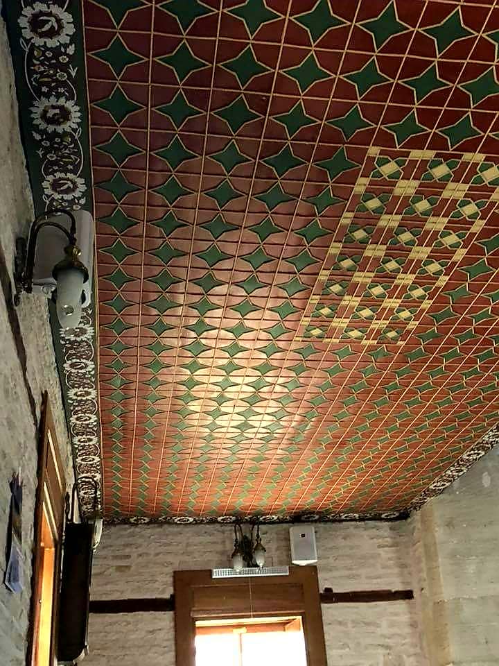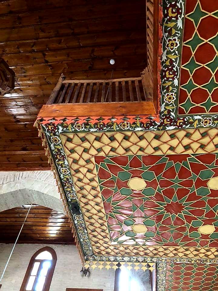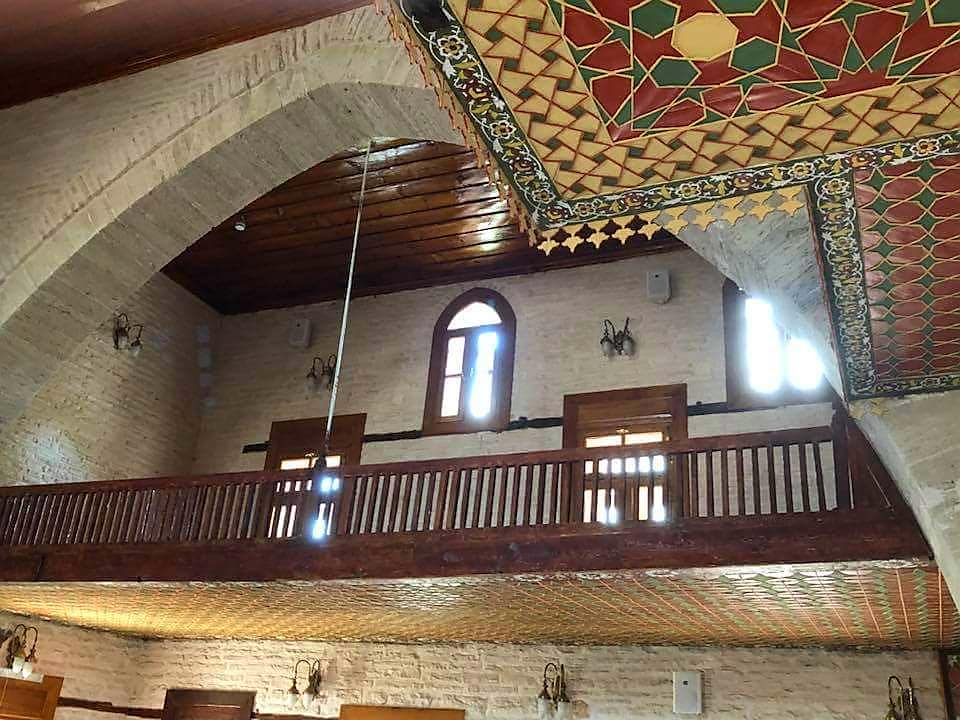 İç mekan U şeklindeki ahşap mahfille iki kat şeklinde tasarlanmıştır. Mahfil alttan tahta kaplamalı olup kalemiş ve ahşap süslemelerle bezenmiştir. Tavanı ve pencere kapakları ahşaptır.