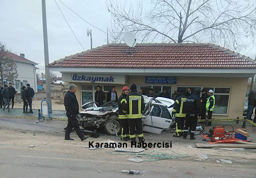 Abdurrahman Evren yönetimindeki 33 TS 969 plakalı kamyonet ile Muslu Eyice yönetimindeki 70 FE 103 plakalı otomobil, Karaman-Konya karayolunun 30. kilometresinde çarpıştı.