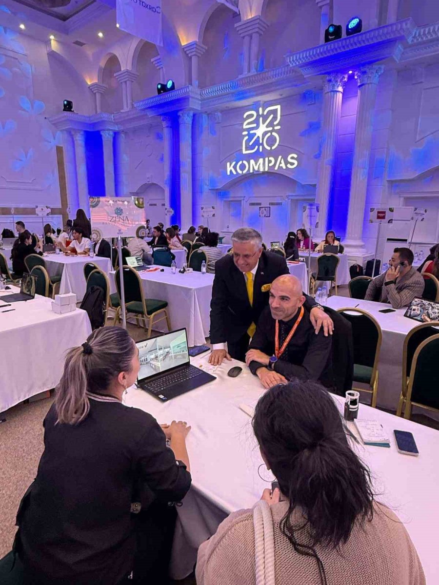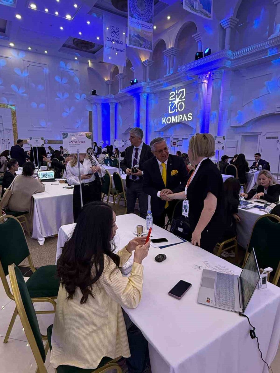 Kemer Belediye Başkanı Necati Topaloğlu, 23. Kazakistan Uluslararası Turizm ve Seyahat Fuarı'nda Kemer tanıtımı yapıyor.
