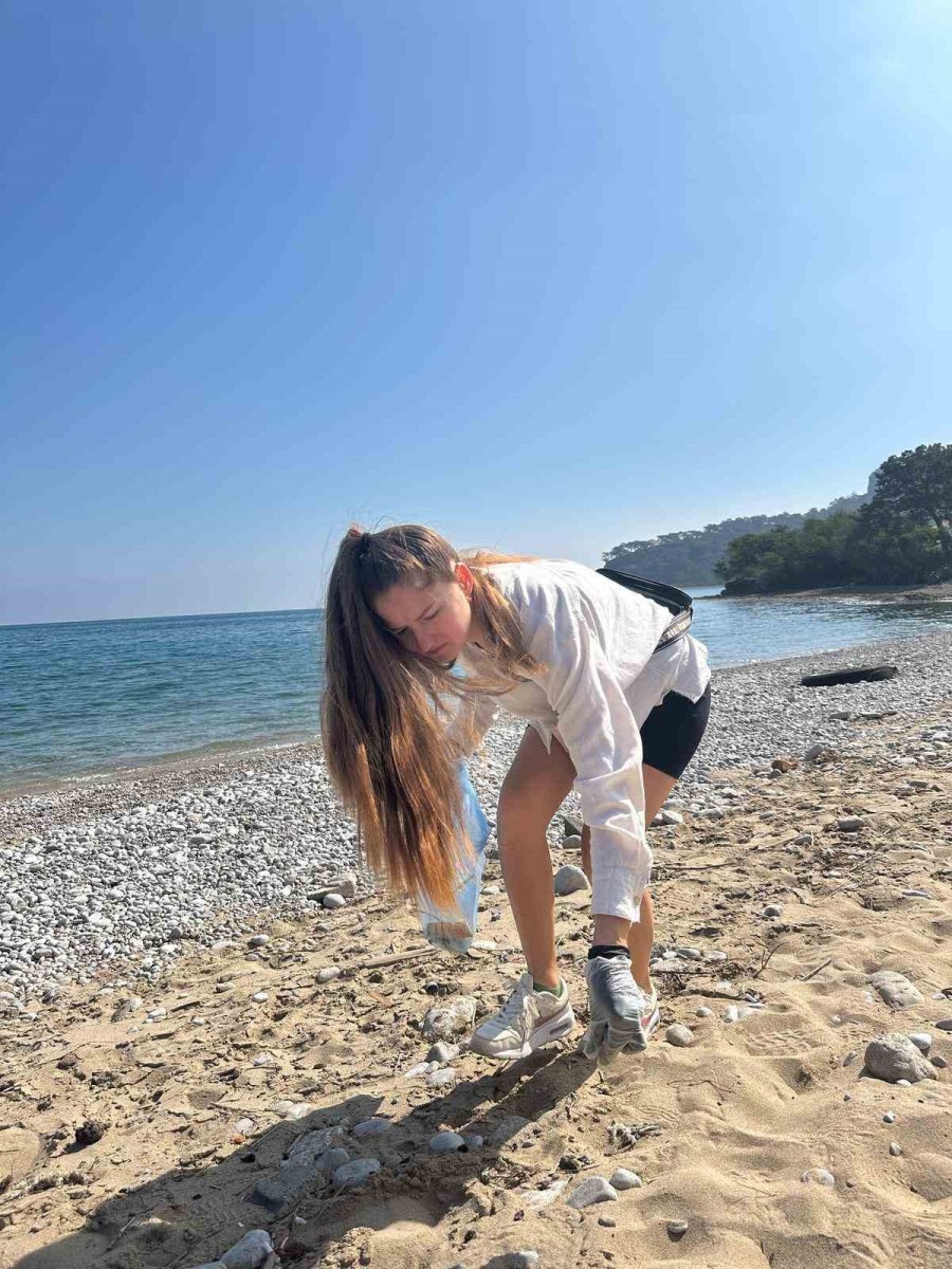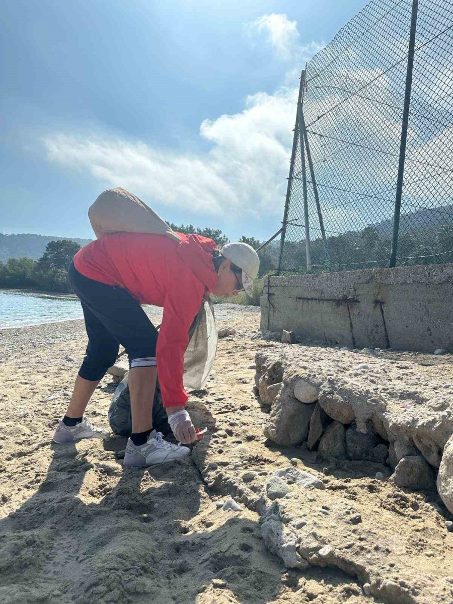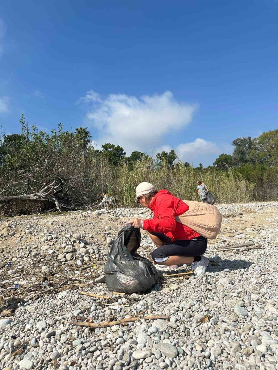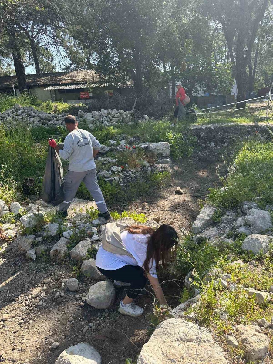 Kemer'de yaşayan yabancı uyruklu kadınlar, Kemer Belediyesi Temizlik İşleri Müdürlüğü ve İklim Değişikliği ve Sıfır Atık Müdürlüğü ekipleri ile Çalış Tepesi ile Ayışığı Parkı arasında bulunan koy ve ormanlık alanda temizlik yaptı.