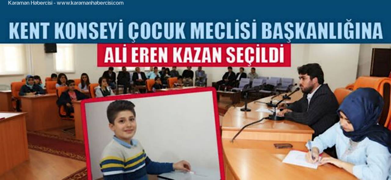 Karaman Kent Konseyi Çocuk Meclisi’nin seçimli genel kurulunda, Anafartalar ortaokulu öğrencisi Ali Eren Kazan çoğunluğun oyuyla yeni dönem başkanlığına seçildi. Belediye Meclis Salonu’nda yapılan seçimli genel kurulda, Divan Başkanlığını Yunus Özdemir yaptı. Kurul başkanı Yunus Özdemir, seçim öncesi yaptığı konuşmada: “Kent konseyi çocuk meclisi başkanını ve yeni yönetimini seçmek için toplandık. Öncelikle kent konseyi nasıl bir yapıdır dersek, halkın katılımıyla oluşan bir yapı konseyidir, farklı meclislerden oluşur. Karaman kent konseyi bu anlamda en zengin konseylerden biridir. Çocuk meclisi de şehrimiz de yaşanan sorunların çocuk gözüyle bizlere ve yetkililere aktarılması noktasında önemli bir yere sahiptir. Bu yüzden sizleri önemsiyoruz ve fikirlerinizden faydalanmak istiyoruz. Sizin burada olmanız okullarınızdaki problemlerin doğrudan bizlere ve bizler aracılığıyla da yetkililere aktarılması için önemlidir. Amacımız burada şeffaf bir ortam yaratmaktır. Dünyanın pek çok yerinde talihsizlikle savaş ortamında bulunan, acımasızca yaşamını yitiren çocuklarımız vardır. Ülkemizin etrafını saran bu sıkıntılardan korunmak için hep birlikte hareket edeceğiz. Bizler bu noktada şanslıyız ki bugün burada toplanma imkânı elde edebildik. Geldiğiniz için teşekkür ederim şimdi oylamaya geçebiliriz” diyerek seçimi başlattı.