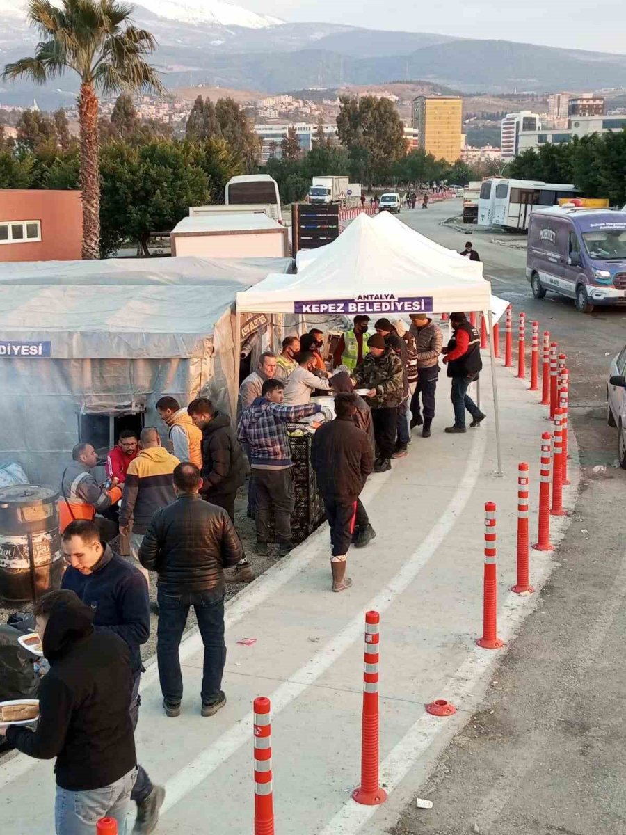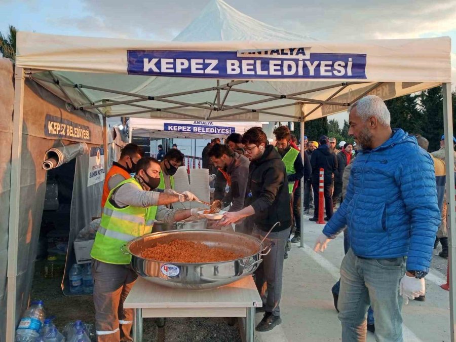 Kepez Belediye Başkanı Hakan Tütüncü, "3 Osmaniye, 2 İskenderun, 2 Elbistan ve 1'i Antalya'da olmak üzere 8 Sahra Mutfağımızda günde 20 binden fazla depremzede vatandaşımıza 24 saat boyunca sıcak yemek ikram ediyoruz" dedi.