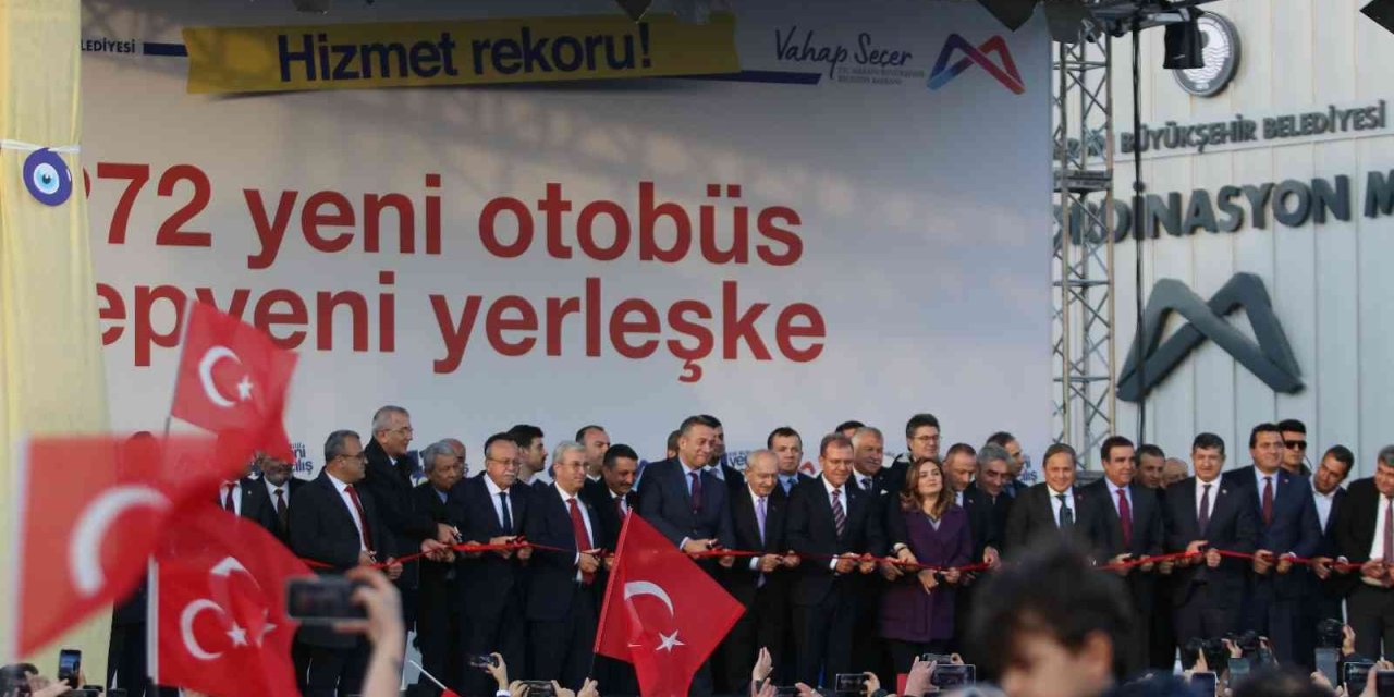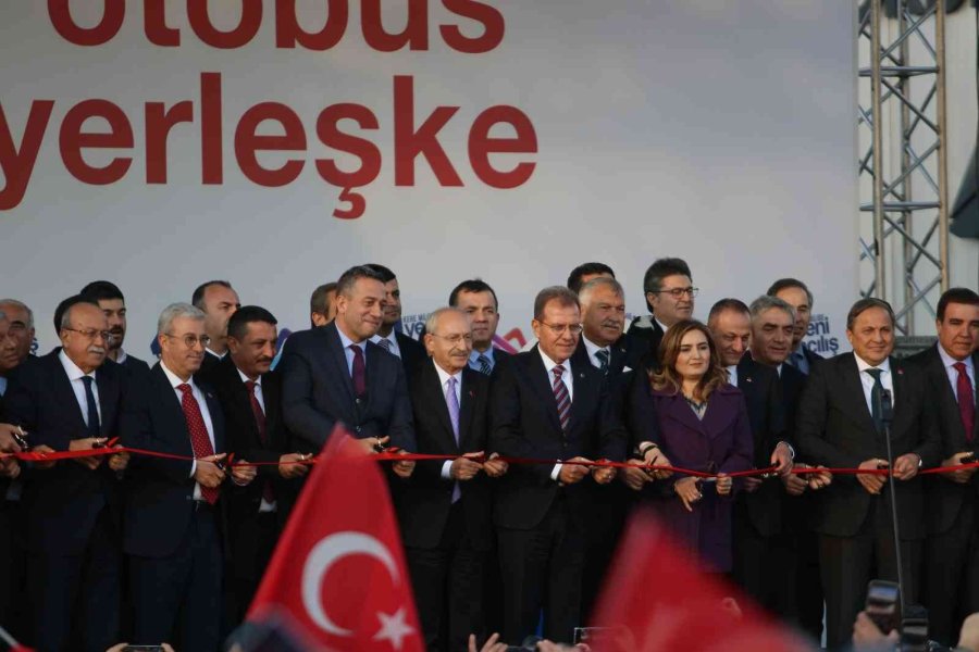 CHP Genel Başkanı Kemal Kılıçdaroğlu, Mersin programı çerçevesinde Büyükşehir Belediyesinin yapımını tamamladığı Toplu Taşıma Yerleşkesinin açılışı ve 41 yeni otobüsün teslim törenine katıldı. Mersin Şehirlerarası Otobüs Terminali yanında inşa edilen yerleşkedeki törende Kılıçdaroğlu'na, Mersin Büyükşehir Belediye Başkanı Vahap Seçer ile çok sayıda davetli ve partililer eşlik etti.