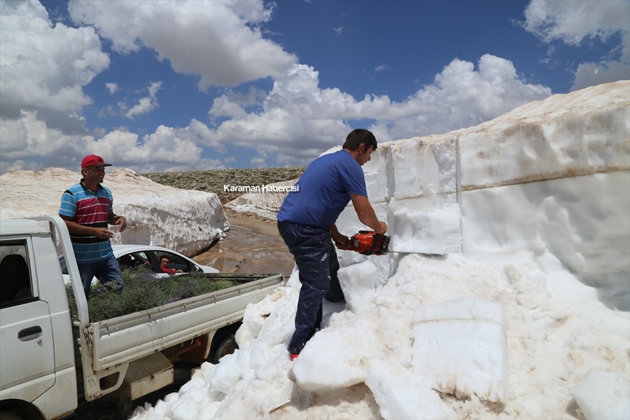 Türkiye’nin büyük bölümünde sıcak hava etkisini sürdürürken, Toros Dağları'nın eteklerinden toplanan kar serinlemek için kullanılıyor.