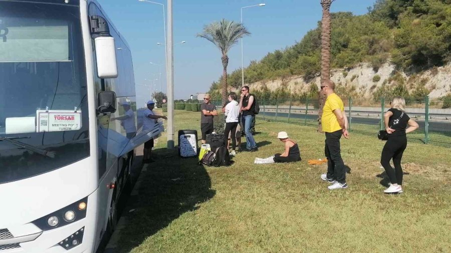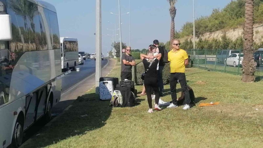 Tur midibüsünde bulunan turistler ise araçtan inip refüjde bulunan çimler üzerinde gelişmeleri takip etti. Turistler, kazanın meydana geldiği yere gelen bir başka araçla tatil yapacakları otellere doğru yola çıktı.