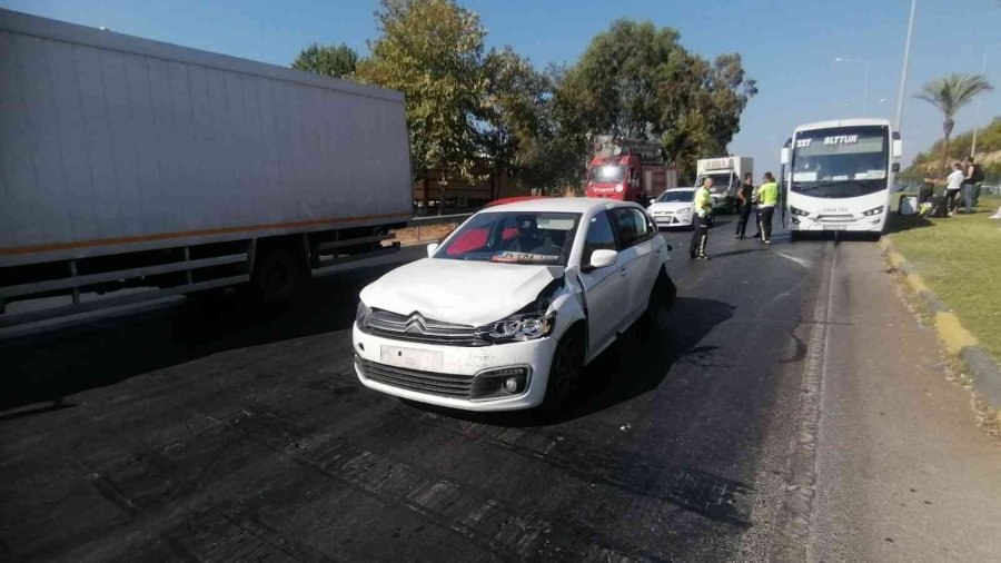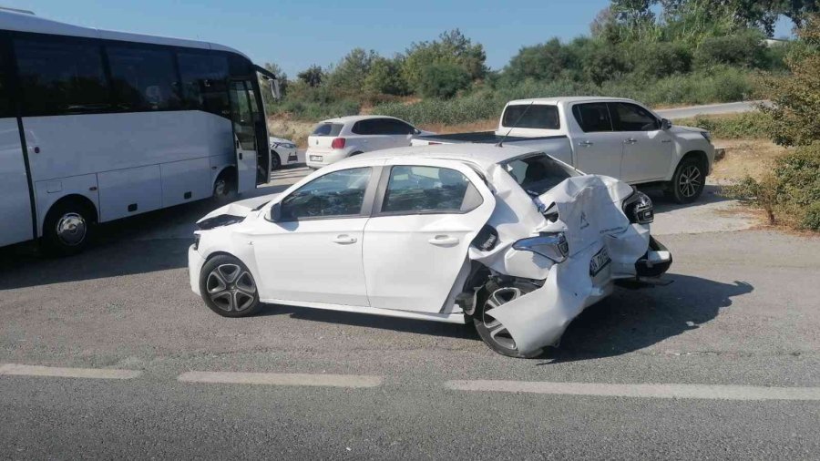 Kaza, Antalya-Manavgat D-400 Karayolu'nda meydana geldi. Edinilen bilgiye göre, İlkay G.'nin kullandığı 07 FYZ 13 plakalı tur midibüsü, Çolaklı Jandarma Kavşağı'na geldiği sırada, kırmızı ışıkta bekleyen Alper Şentürk'ün kullandığı 34 CMA 155 plakalı otomobile arkadan çarptı. Çarpmanın şiddetiyle otomobil, öndeki 07 ATS 882 plakalı Sinan Öz'ün kullandığı araca çarptı. Kazada bir araç hurdaya dönerken, şans eseri kimsenin burnunun bile kanamadı.