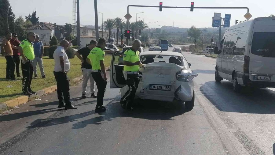 Kırmızı Işıkta Bekleyen Araçlara Tur Midibüsü Çarptı, Bir Araç Hurdaya Döndü