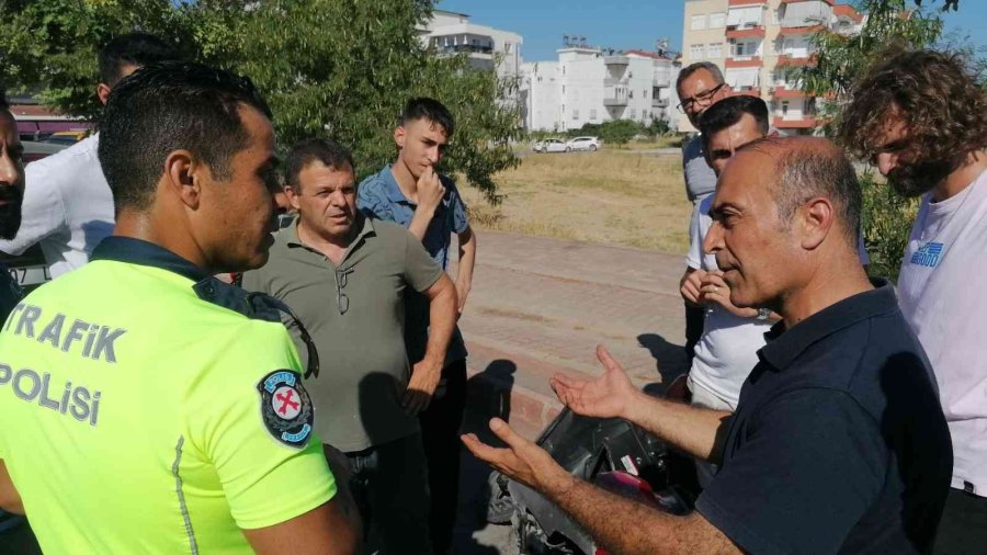 Antalya'nın Manavgat ilçesinde otomobilin çarptığı motosiklet, çarpmanın şiddetiyle yanındaki otomobile çarptı.