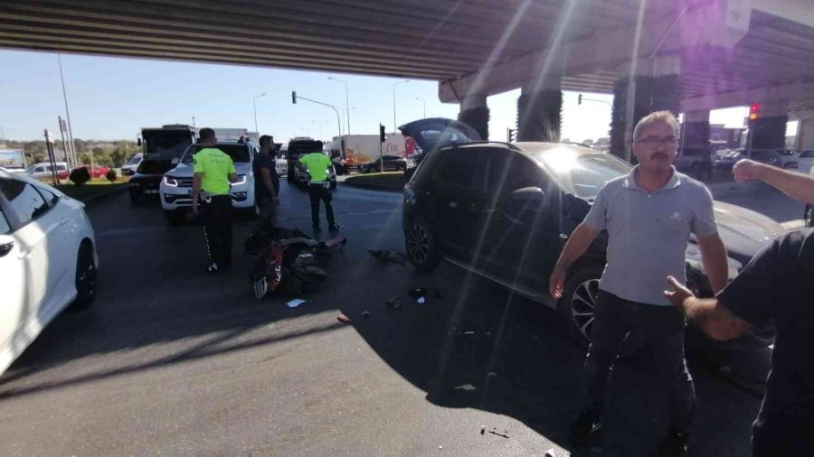 Kırmızı Işıkta Geçen Otomobil Motosiklete Çarptı: 1 Yaralı
