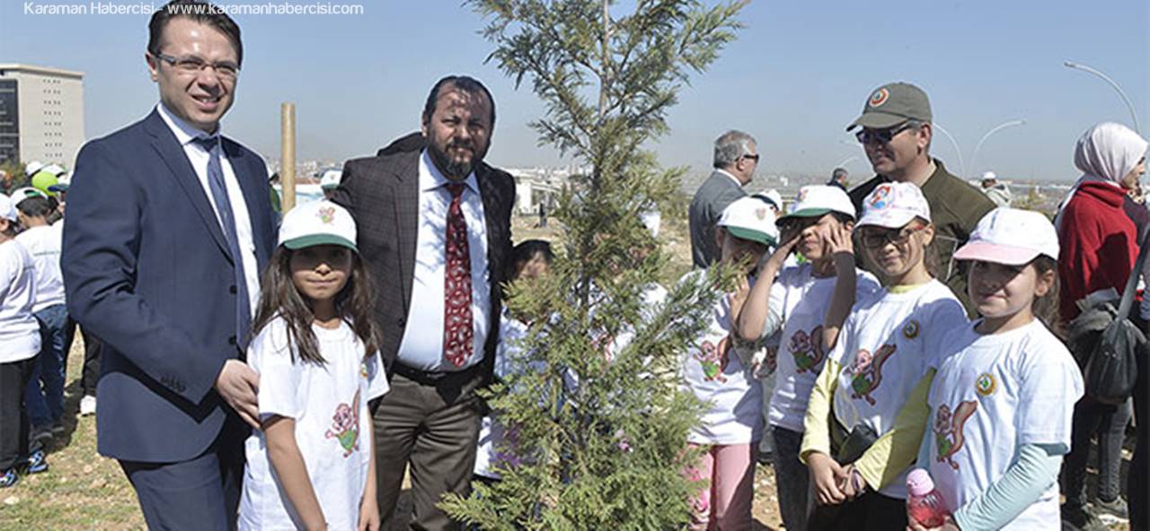 KMÜ yerleşkesi içerisinde daha önceden belirlenen beş hektarlık alanda hazır bekleyen 3 bin adet fidan Vali Meral, Rektör Akgül, protokol üyeleri ve minik öğrencilerin ellerinde toprakla buluştu.