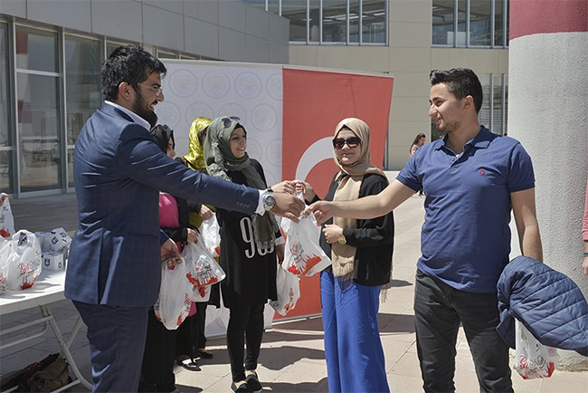 Karamanoğlu Mehmetbey Üniversitesi (KMÜ) Öğrenci Toplulukları tarafından Miraç Kandili dolayısıyla kandil simidi dağıtıldı.