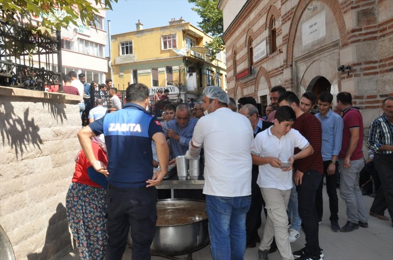 Muharrem ayının, bolluğun ve bereketin simgesi olan aşure, ilçede Cuma namazı çıkışında vatandaşlara ikram edildi.