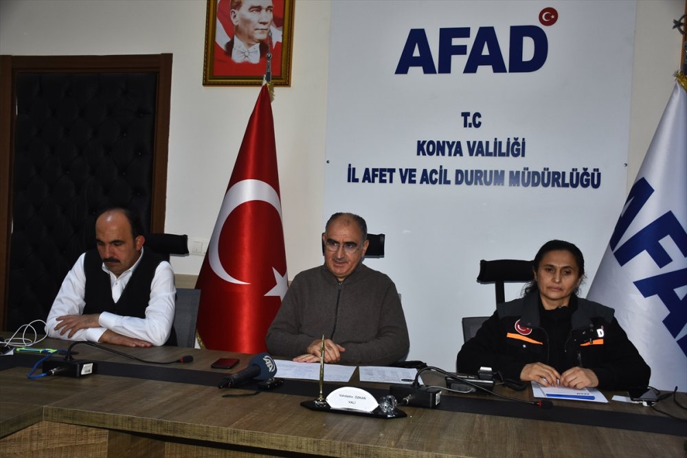 Konya Valisi Vahdettin Özkan, "An itibarıyla can kaybı olmadığını söyleyebiliriz ama çalışmalarımız bütün alanlarda, bütün yerleşim birimlerinde, riske maruz kalmış bütün yerlerde sokak sokak, ev ev arama yapmak suretiyle sabaha kadar aralıksız olarak devam edecektir." dedi.