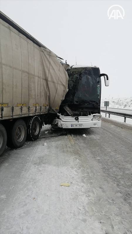 Konya'da, yolcu otobüsünün seyir halindeki tıra çarpması sonucu 6 kişi yaralandı.