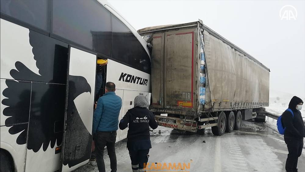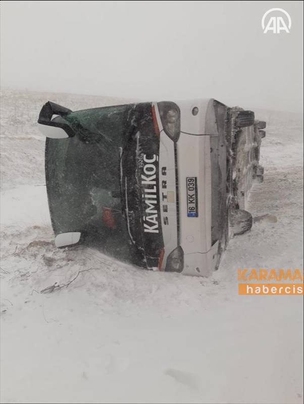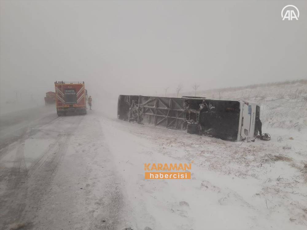 Remzi Manav idaresindeki 16 KK 039 plakalı yolcu otobüsü, Konya-Aksaray kara yolu Akörenkışla Mahallesi yakınlarında sis ve buzlanma nedeniyle kontrolden çıkarak şarampole devrildi.
