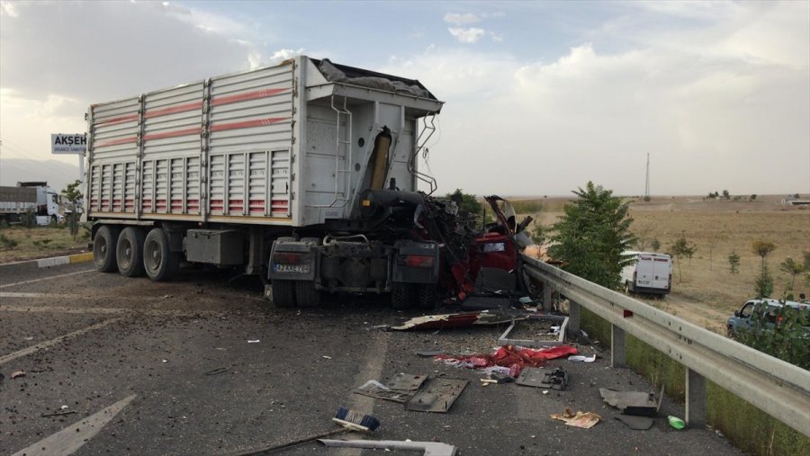 Alınan bilgiye göre, Akşehir-Konya kara yolu Organize Sanayi Bölgesi yakınlarında Ayhan Kemer'in (55) kontrolünden çıkan 42 AAE 784 plakalı tır, karşı şeride geçerek, Konya'dan Akşehir yönüne giden Yavuz Ayvaz (41) yönetimindeki 41 NN 829 plakalı tır ile çarpıştı.