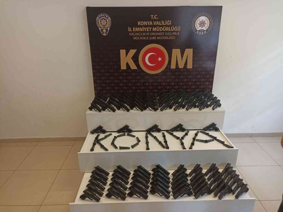 Edinilen bilgiye göre, Konya İl Emniyet Müdürlüğü Kaçakçılık ve Organize Suçlarla Mücadele (KOM) Şube Müdürlüğü ekipleri, dron destekli gerçekleştirdiği yol uygulamasında görüntülerde oto kurtarıcı aracında sürücünün yan koltuğunda koliler fark etti. Durumundan şüphelendiği oto kurtarıcı aracını durduran KOM ekipleri, yaptıkları aramada illere sevk edilmek üzere koliler halinde paketlenmiş 105 adet tabanca ve bu tabancalara ait 61 adet şarjör ele geçirdi. Gözaltına alınan araç sürücüsü ifadesi alınmak üzere emniyete götürüldü. Polisteki işlemleri tamamlanan şahıs sevk edildiği mahkemece tutuklanarak cezaevine gönderildi.
