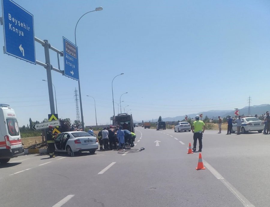 Kemal Korkmaz (22) idaresindeki 07 AGB 946 plakalı otomobil, Seydişehir-Antalya Çevre Yolu Muradiye Kavşağı'nda, ehliyetsiz sürücü Buğra Rıdvan A. (16) yönetimindeki 42 ZB 557 plakalı traktörle çarpıştı.