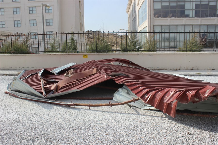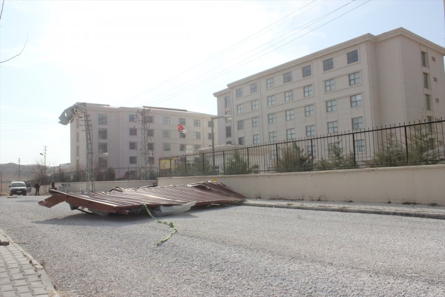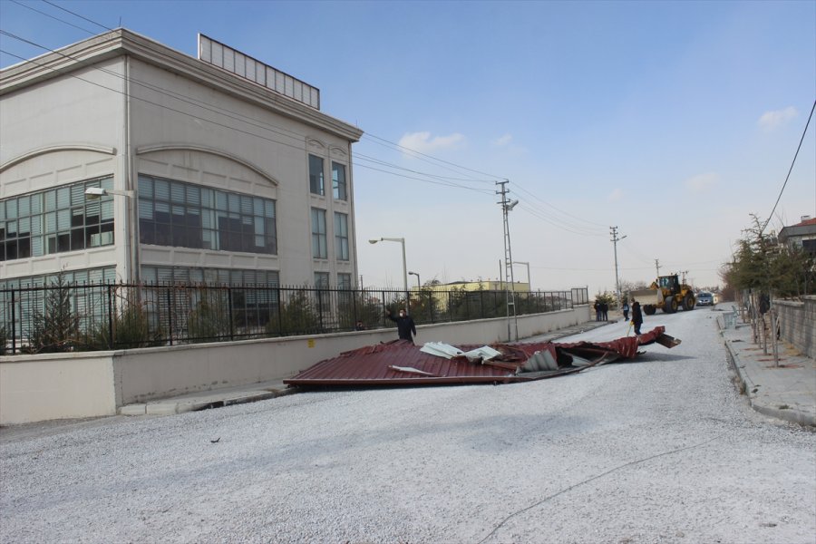Karapınar ilçesindeki Kredi ve Yurtlar Kurumuna bağlı Sultan Veled Kız ve Erkek Öğrenci Yurdu'nun çatısı, fırtına nedeniyle uçtu.