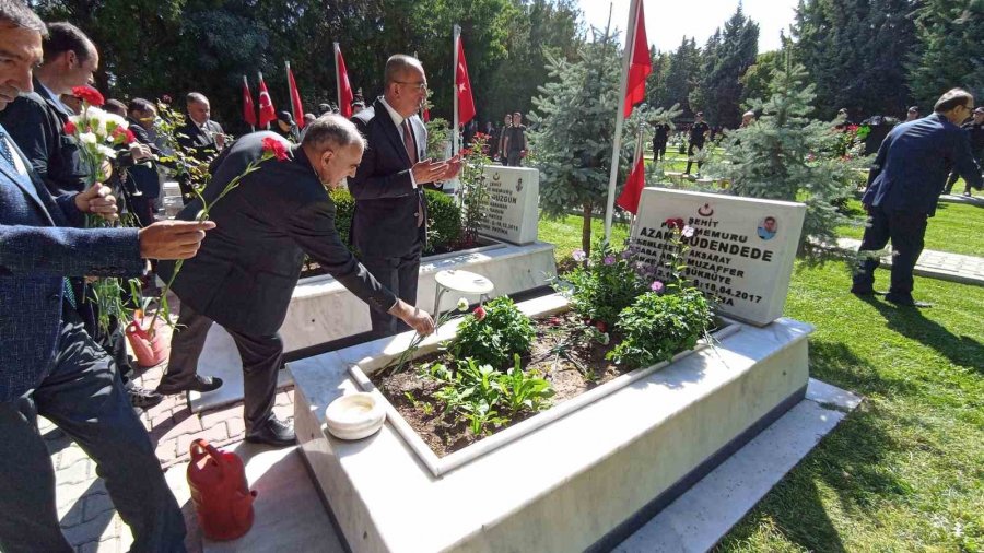 Konya'da 19 Eylül Gaziler Gününde Konya Valisi Vahdettin Özkan ve beraberindeki heyet şehitliği ziyaret ederek, karanfil bırakıp dua etti.