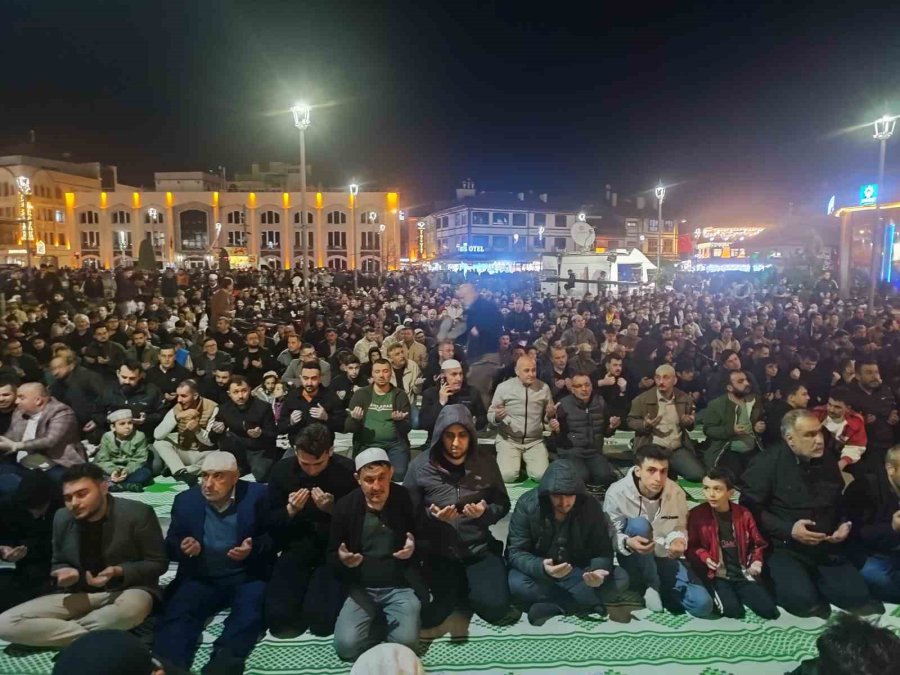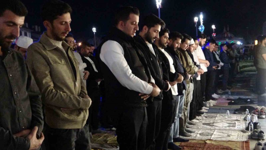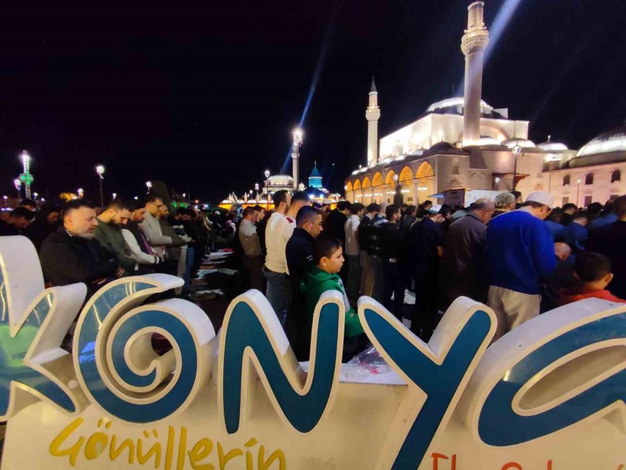Konya'da Mevlana Meydanı'nı dolduran binlerce kişi Kadir Gecesi'ni idrak etti.