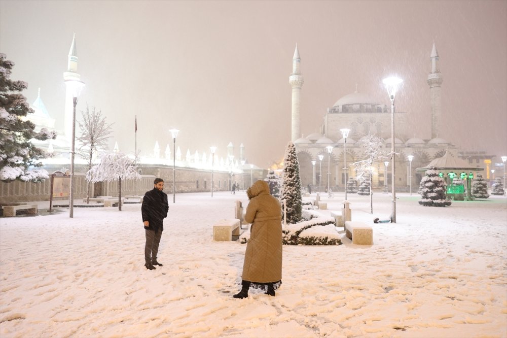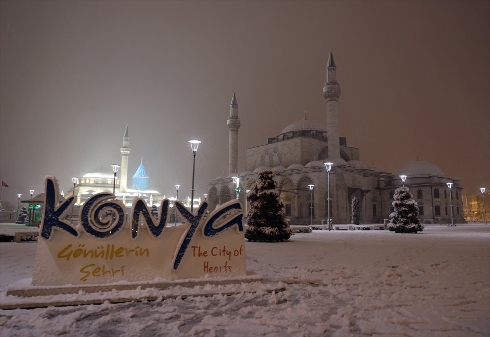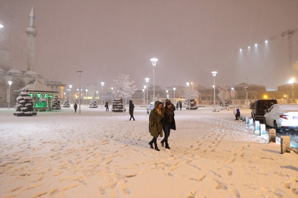 Konya'da kent merkezi ve ilçelerinde kar yağışı etkili oluyor.