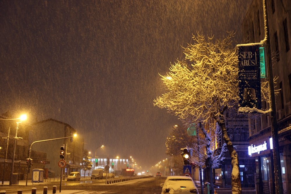 Akşam saatlerinden beri kar yağışının devam ettiği şehir merkezi beyaza büründü.