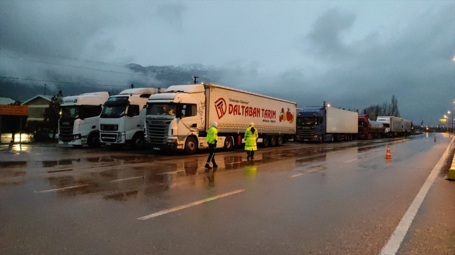 Seydişehir Marangozlar Kavşağı'nda yapılan uygulamada, çekici türü araçların geçişine izin verilmiyor. Araçlar, petrol istasyonları ve dinlenme tesislerinde bekletiliyor.