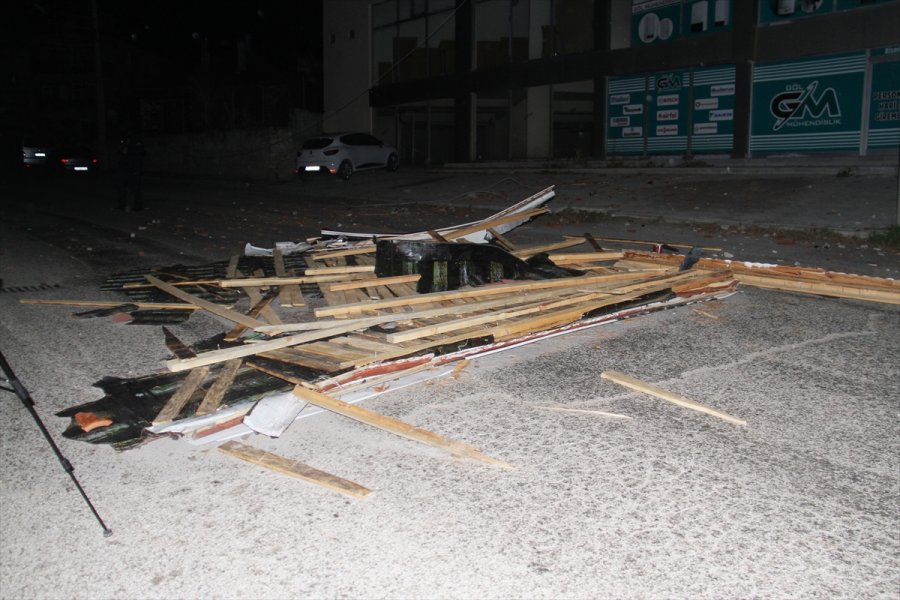 İlçe merkezinde akşam saatlerinden beri etkili olan şiddetli rüzgardan, Hamidiye Mahallesi'ndeki 4 katlı bir sitenin çatısının bir bölümü uçtu.