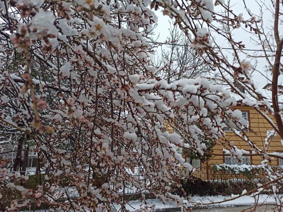 Konya'nın Seydişehir ilçesinde Mart ayında yağan kar sürücülere zor anlar yaşatırken, vatandaşlar tarafından ise sevinçle karşılandı. Erken çiçek açan meyve ağaçları da kardan nasibini aldı.