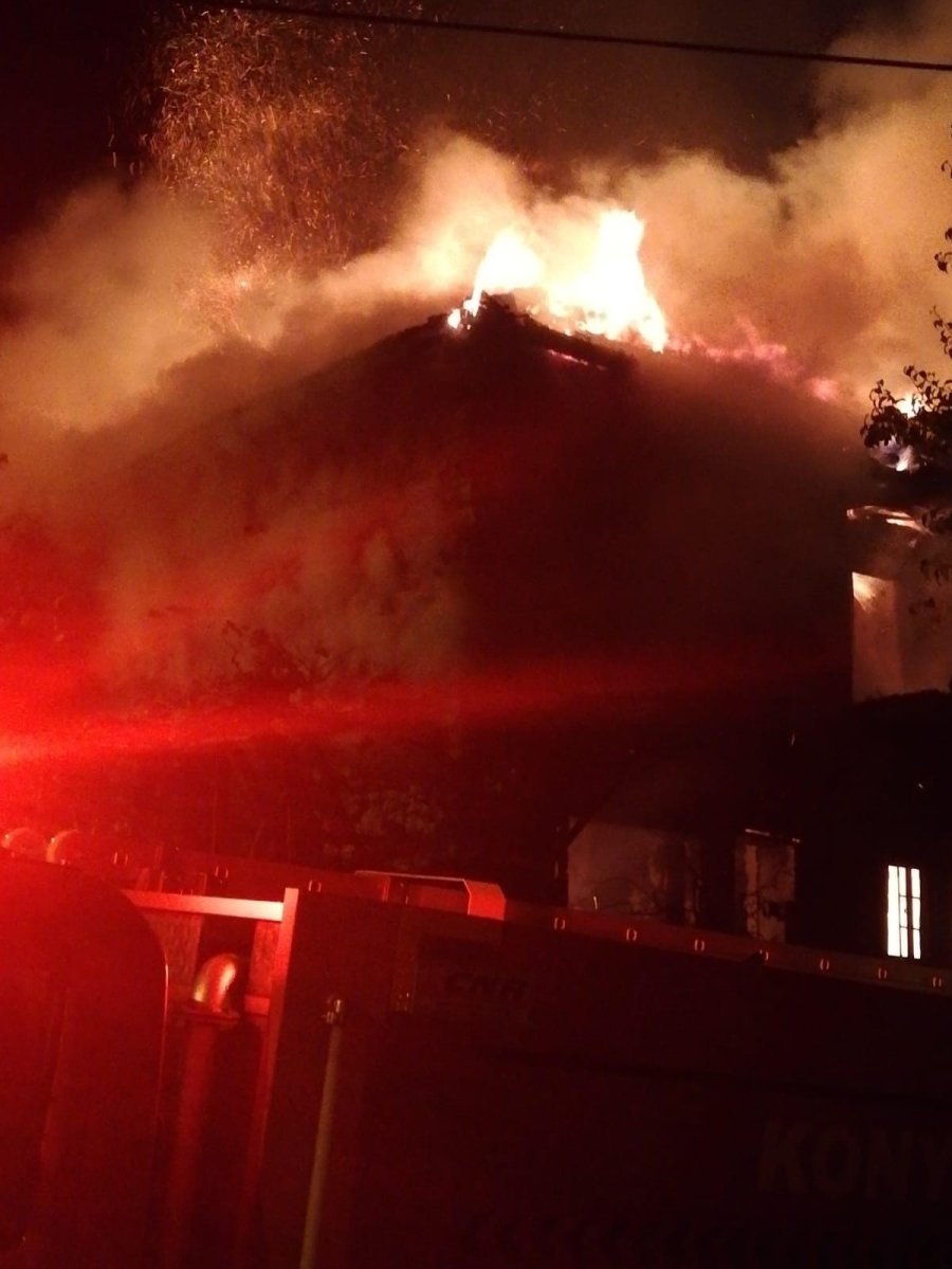 Konya'nın Beyşehir ilçesinde metruk bir bina alev alev yandı.