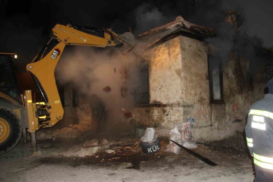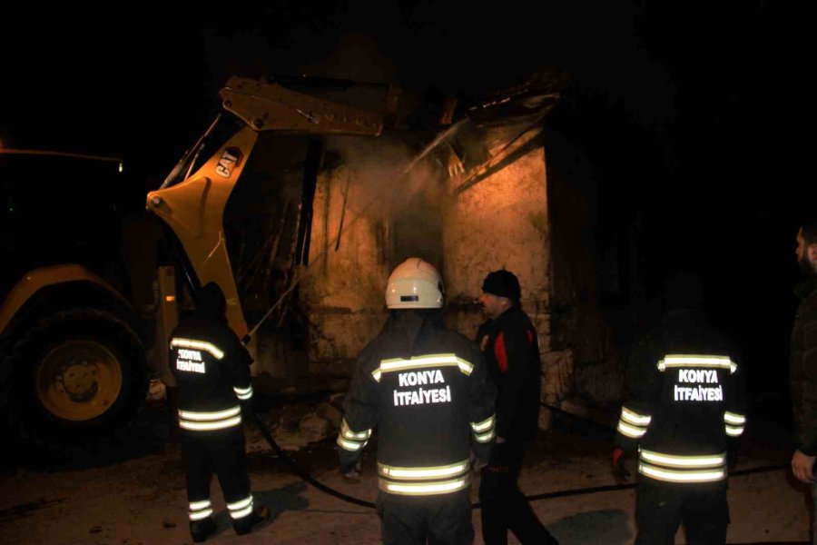 Konya'nın Beyşehir ilçesinde atıl vaziyetteki metruk ev, çıkan yangın sonrası alev alev yandı.