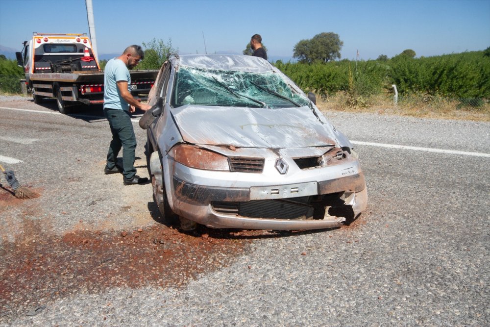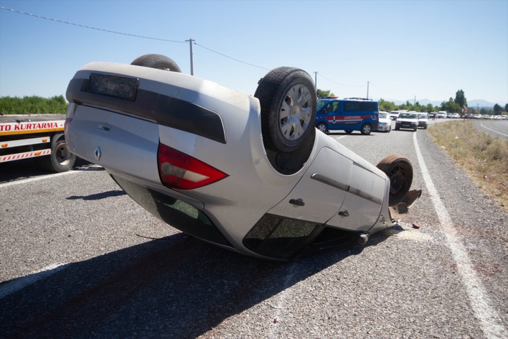 Taklalar atarak karşı şeride geçen otomobil, yol üzerinde ters döndü.